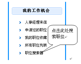 2) 進(jìn)入"個人管理中心",位于左側(cè)子欄目的"我的工作機(jī)會",點擊"職位搜索器"如下圖所示: